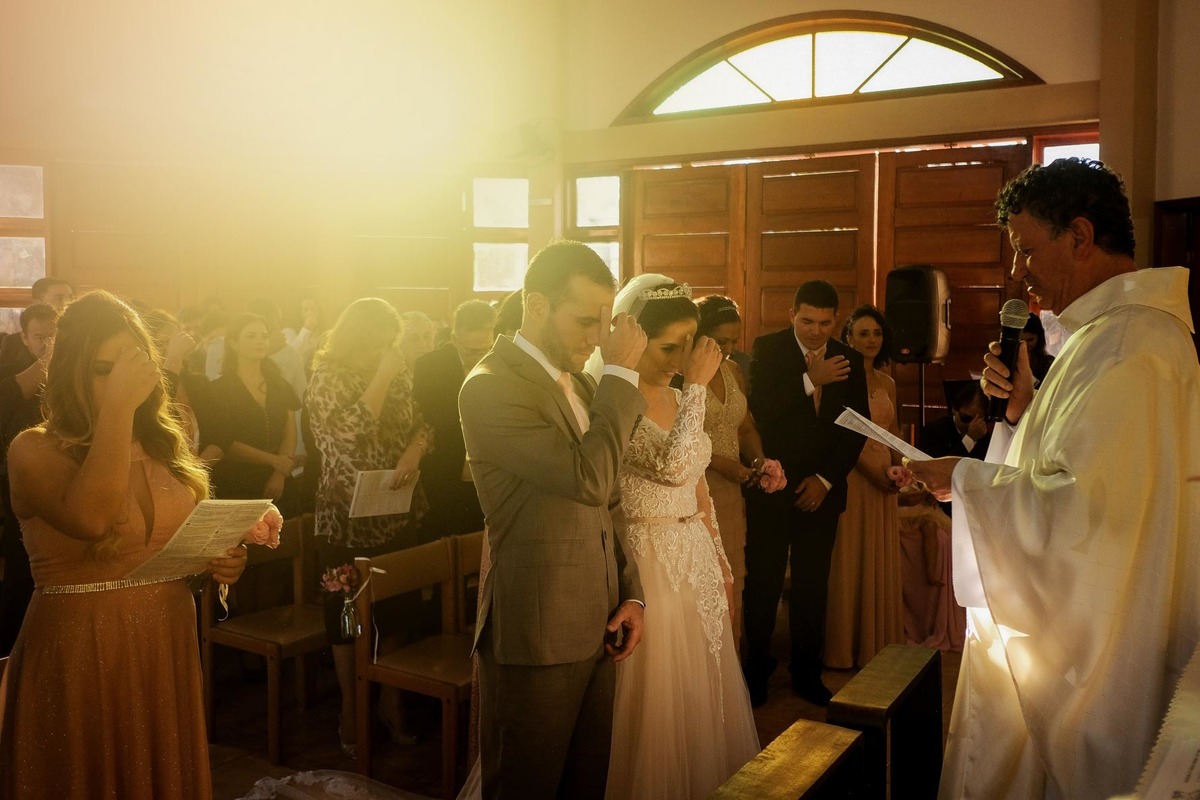 Todos os detalhes da cerimônia foram muito bem pensamos por eles, cada padrinho tinha um motivo especial por estar lá, assim como nós, o padre Inácio e a cantora Milena, todos faziam parte da história. A Capela ficou ainda mais linda com a luz natural do pôr do sol entrando pelos vidros, cheia de amigos, família, e com muita emoção. A recepção caprichada como sempre pela Beth com suas delicias e muito carinho com todos.