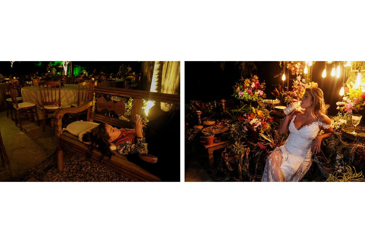 A casa já estava lotada e o pôr do sol começando a descer por de trás da montanha quando a Daniela chegou, o Rodrigo a esperava de costas no altar, foi tão difícil segurar curiosidade e ansiedade que rolou uma rápida espiadinha antes mesmo da Dani apontar rs