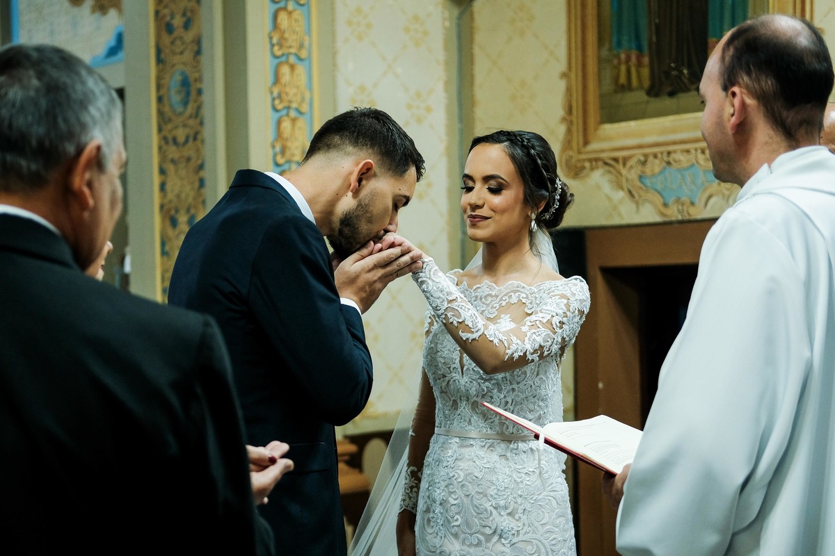 Um casamento bem clássico e muito emocionante, ambas as famílias são muito religiosas e estavam todos ansioso para celebrar juntos e receber as bençãos de Deus.
