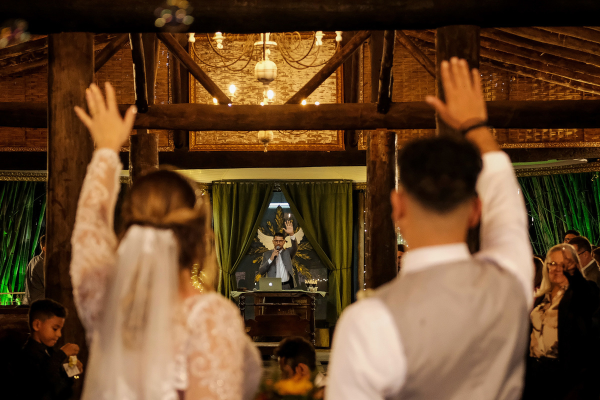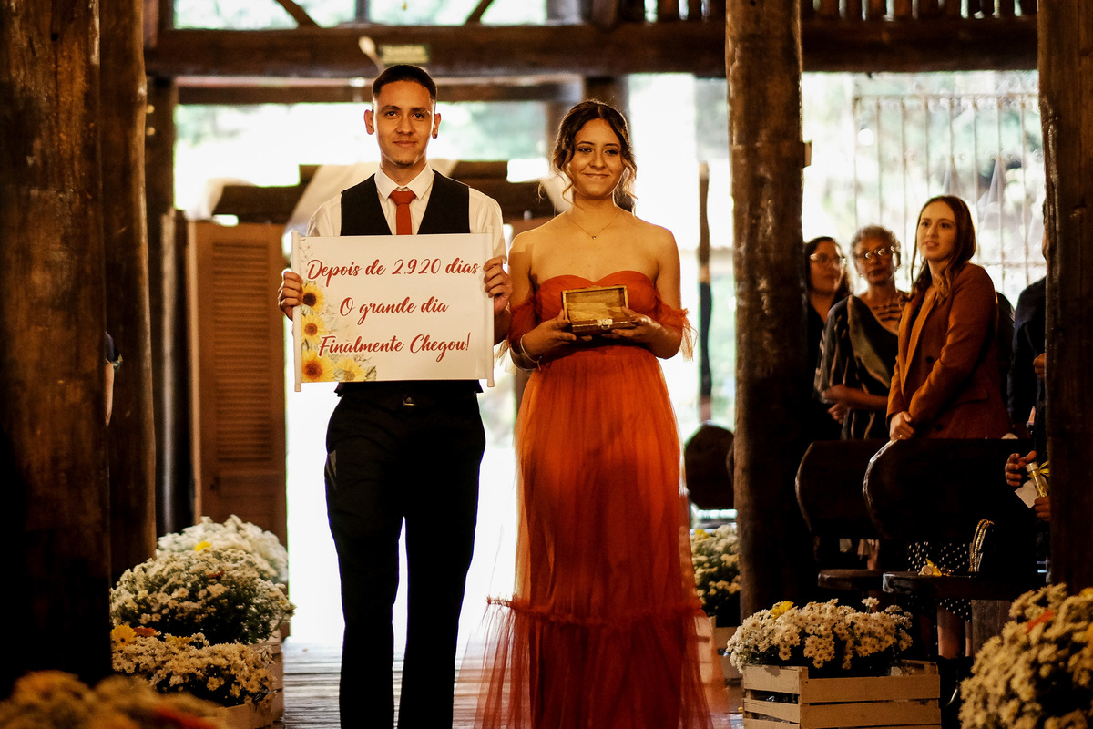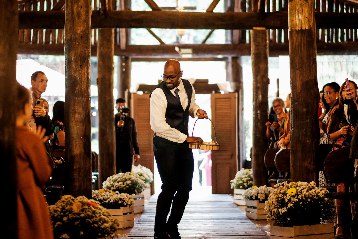 O Pastor Marcos Paulo com suas palavras intensas e cheias de ensinamentos, conduziu com mestria a cerimônia. Que também contou com momentos únicos e descontraídos, como a entrada do padrinho/ florista, dançando e jogando pétalas de rosas e do Mateus, que também entrou literalmente na dança ao lado de sua mãe. E ainda teve uma linda nuvem de fumaça colorida na saída da igreja.