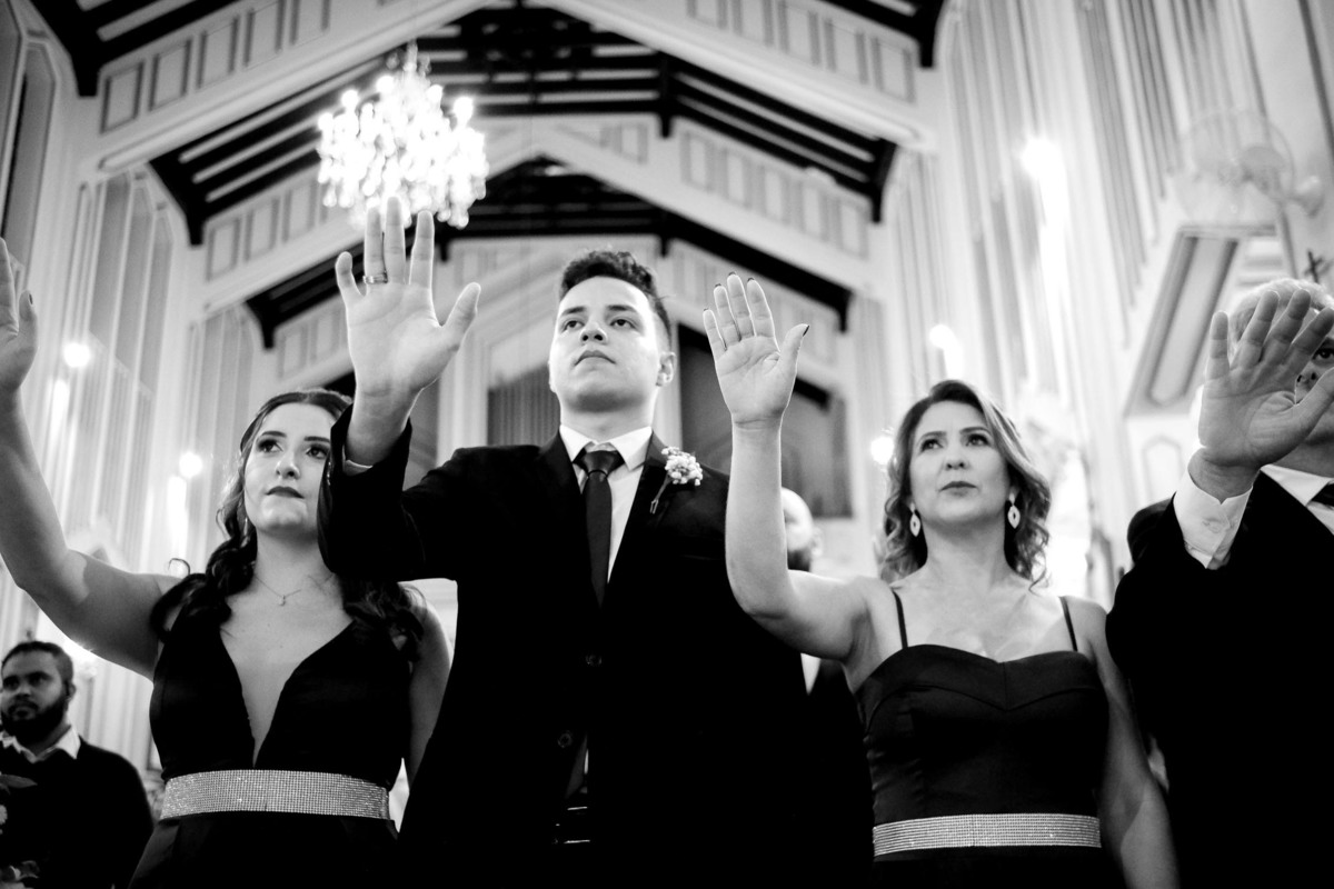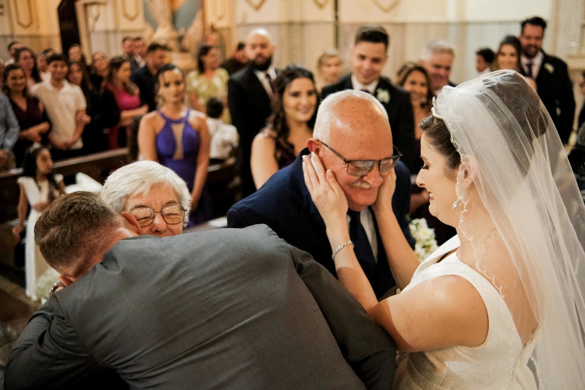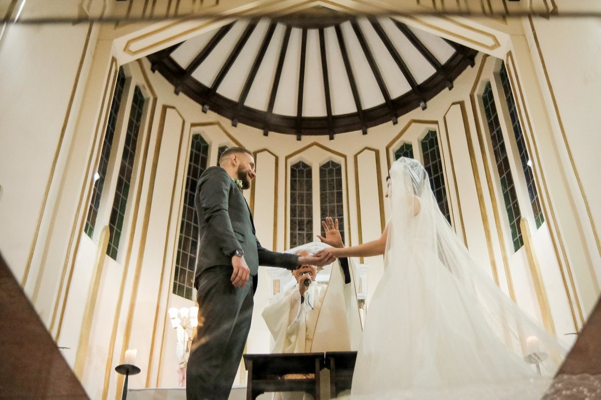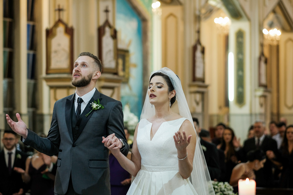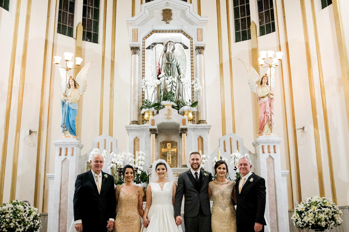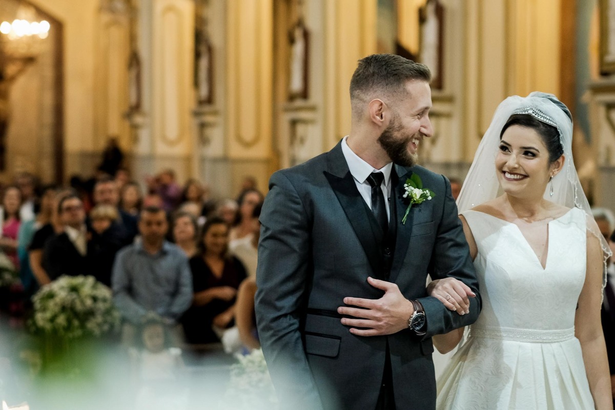 O casamento foi no aconchegante Bairro da Mooca, que parece uma pequena cidade dentro da imensa São Paulo, a Igreja escolhida foi a São Gabriel Arcanjo, que fica ao ladinho do apê novo deles.