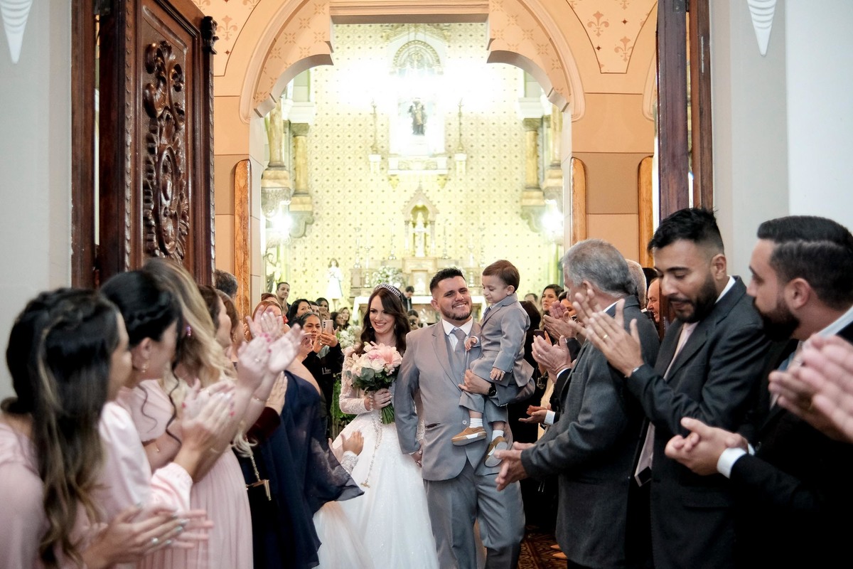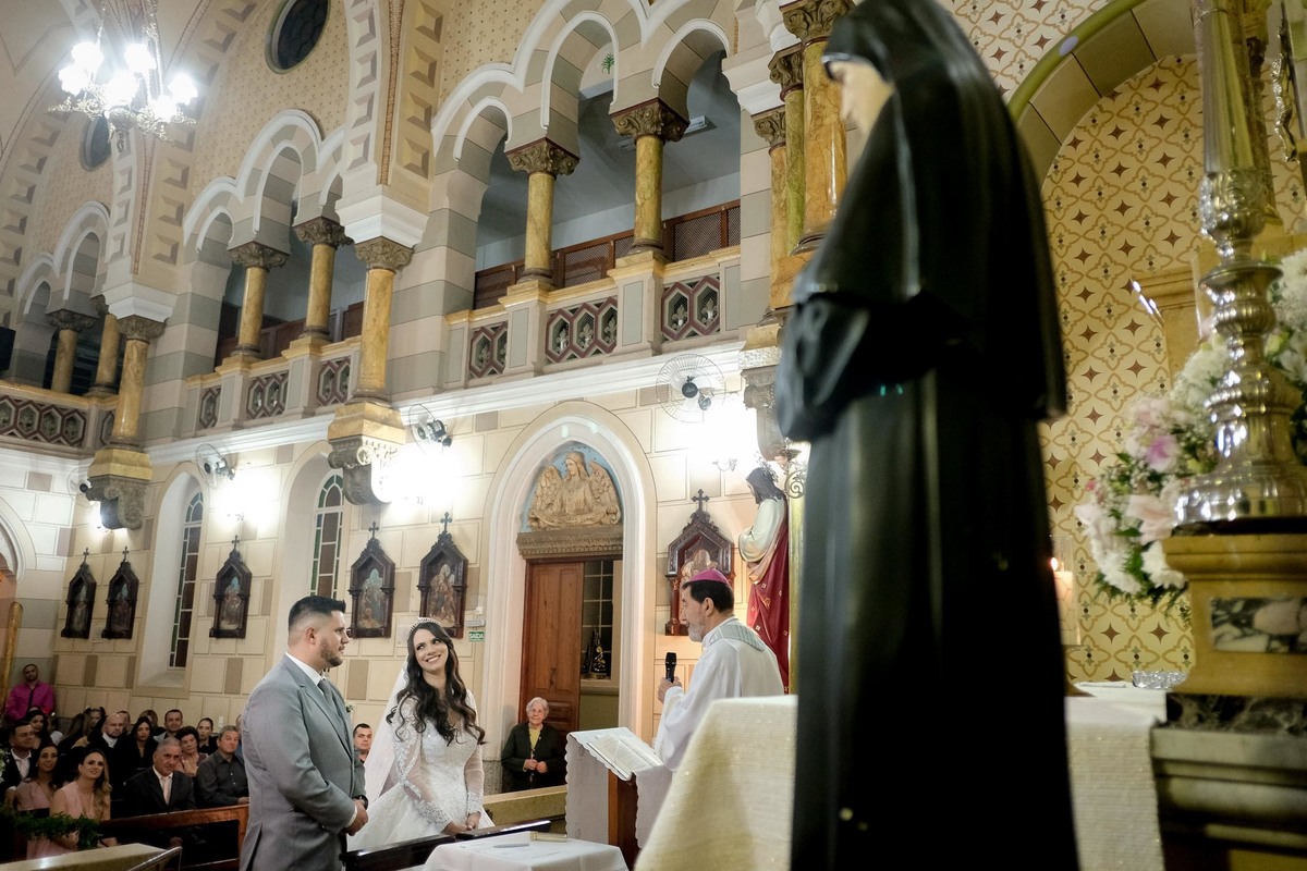 A Mariana e o Flávio mesmo juntos há um bom tempo e já casados no civil, esperaram a hora certa para celebrar a união, comemorar junto a família e amigos, e claro, receber as Bençãos de Deus.