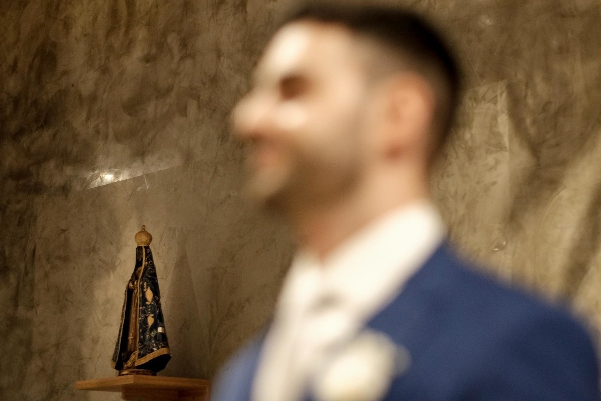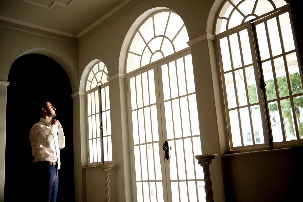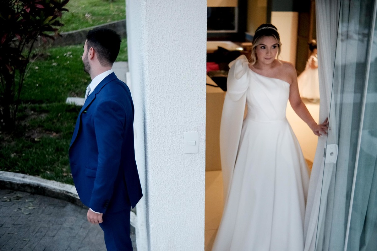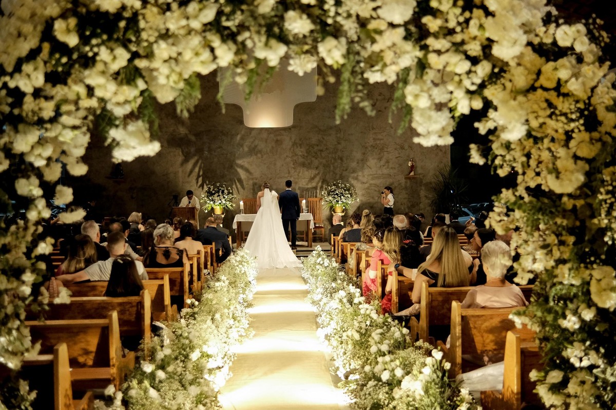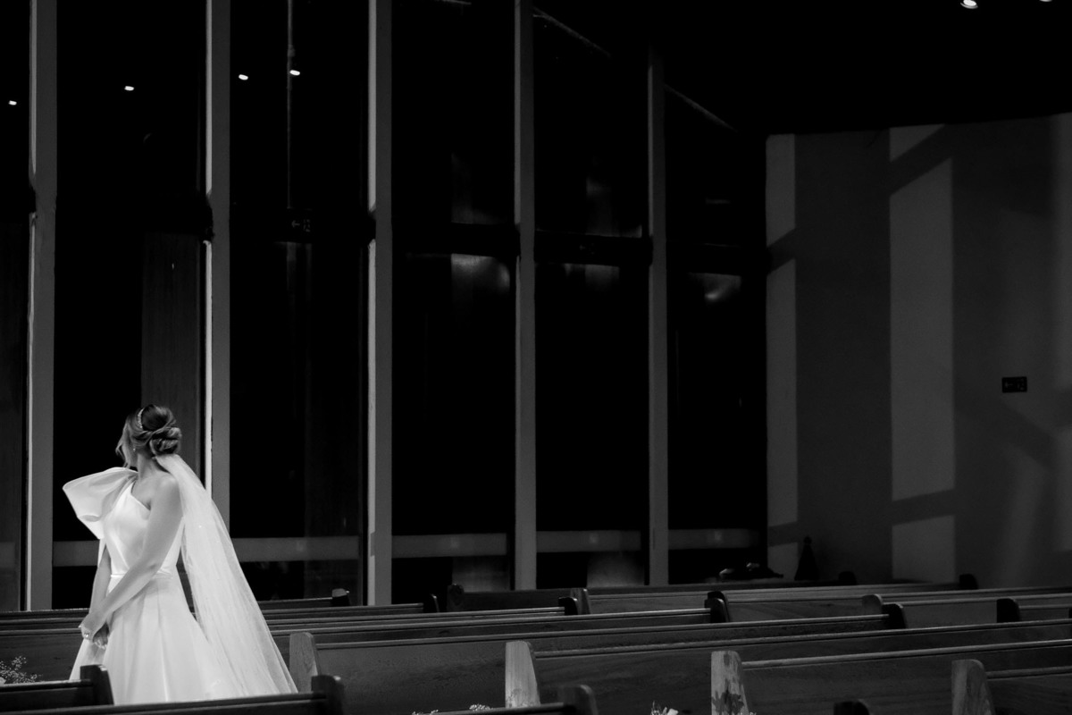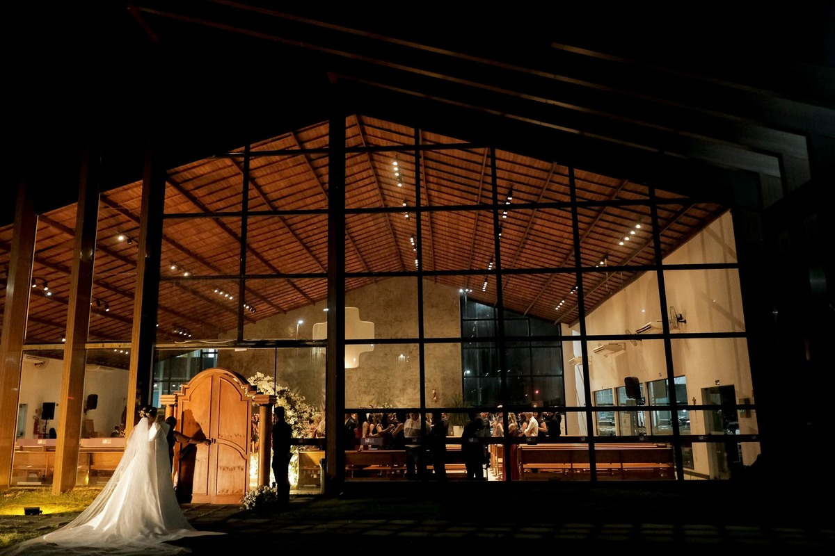 Este foi o nosso primeiro casamento no Memorial Padre Léo, localizado junto ao Shopping de Lorena. Confesso que nunca havia ouvido falar antes deles mencionarem que seria lá. A capela é linda, toda em vidro, com uma iluminação direcional, um ambiente clean e minimalista que ficou ainda mais maravilhoso com a decoração da talentosa Harumi e a iluminação do Rafael da W Produções, um grande parceiro de longa data e que desta vez foi padrinho.