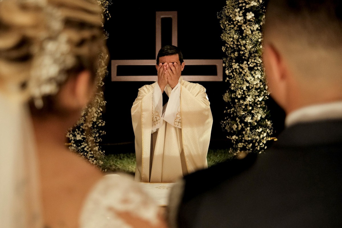 Uma cerimônia muito litúrgica celebrada pelo Padre Edson Odaguiri que é um grande amigo do casal e acompanhou o relacionamento desde o começo.