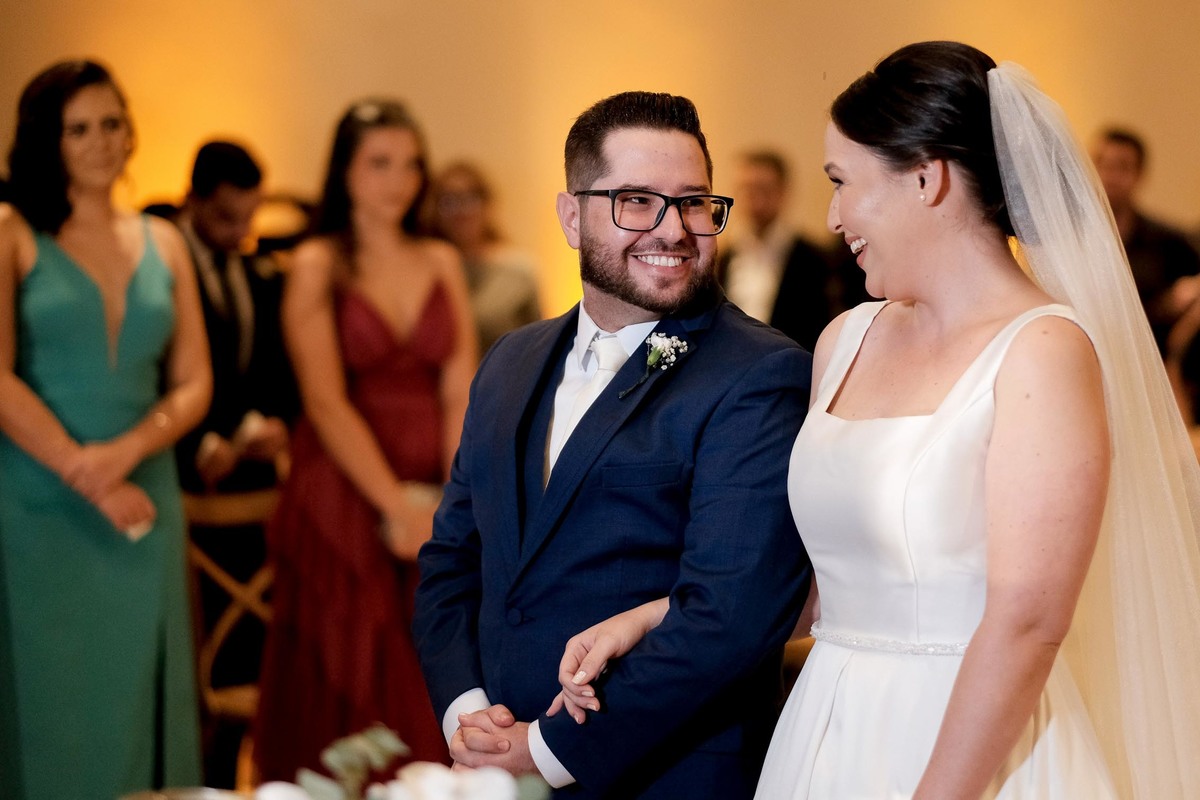 Já a Julia optou por se arrumar rodeadas pelas madrinhas, mães e sua Avó Maria Inês, que foi quem presenteou o casal com a aliança usada por muitos anos pelo seu marido e que agora virou duas e será o símbolo dessa nova união.