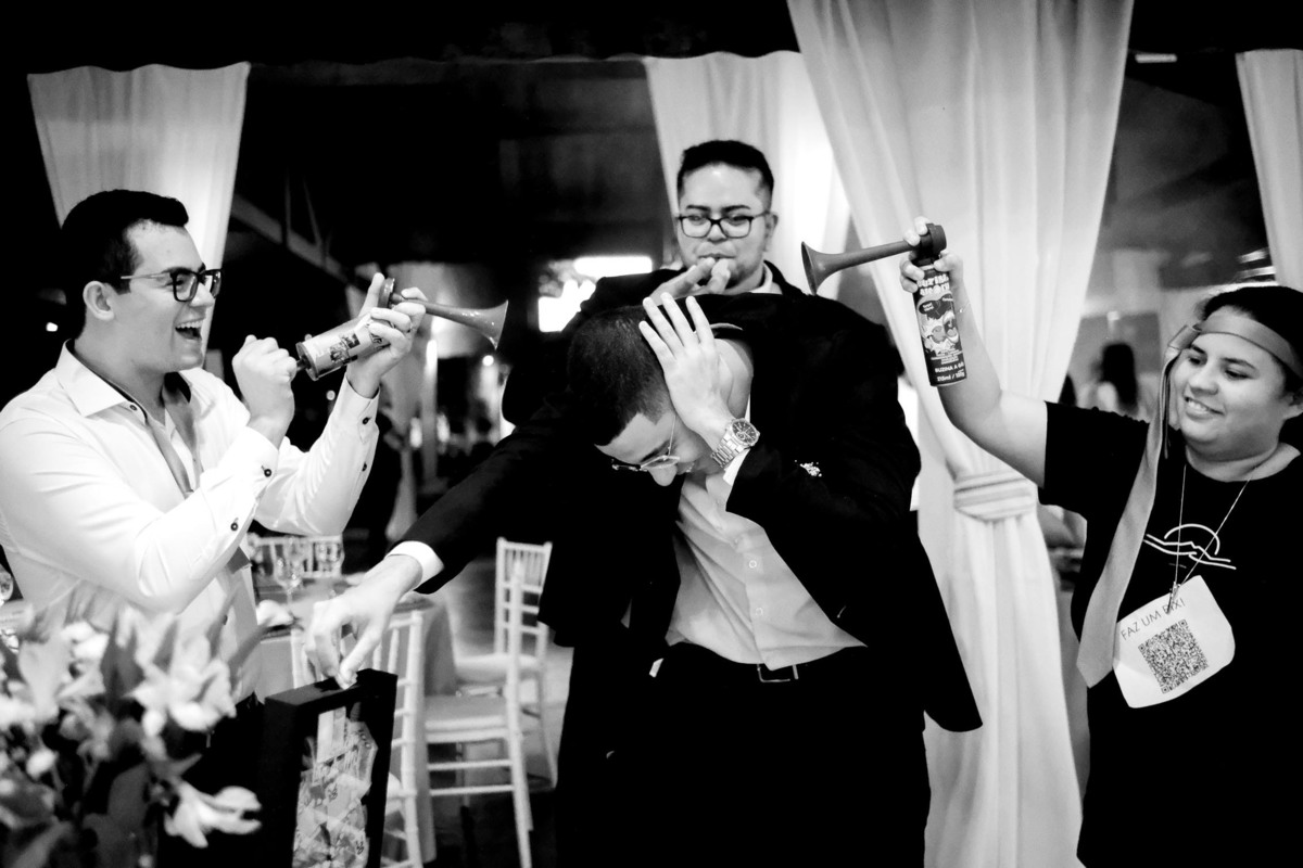 E claro, um dia especial, com uma celebração tão linda, merece uma comemoração a altura! E a recepção foi no Recanto do Bosque, onde estamos muito acostumados e nos sentimos em casa, a festa rolou ao som do André Moraes edas inesquecíveis cornetas da gravata, que roubaram a cena rss
