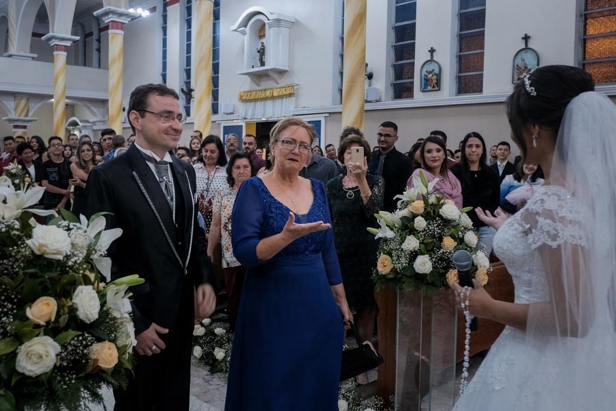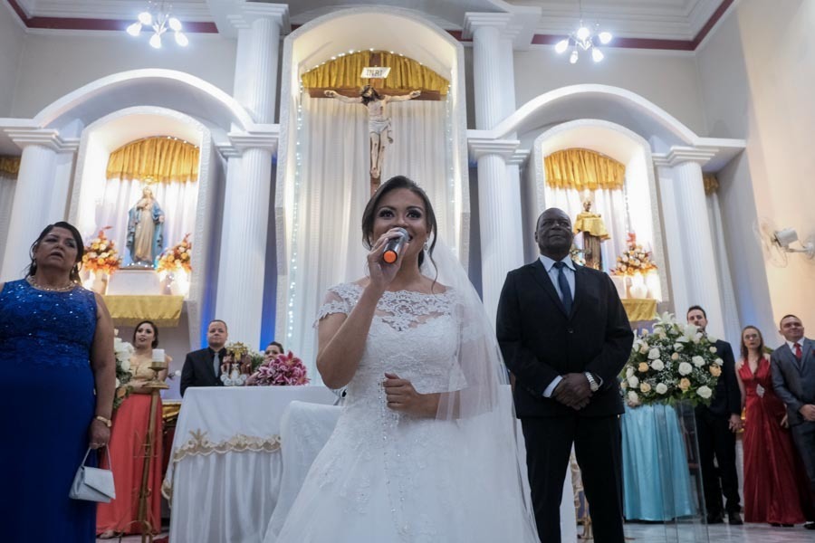Por mais que o casamento seja uma cerimônia clássica, que tem um certo protocolo a seguir, cada casamento tem sua carinha, suas emoções e seus momentos, e em alguns casos as surpresas se tornam inéditas. Bom, nesse caso até mesmo para mim, pois até em então, mesmo com muitos casamentos em todos esses anos, foi a primeira vez que vi a noiva entrar antes que o noivo, isso mesmo! Ela entrou antes e quando as portas da Igreja de São Benedito se abriram, para a surpresa do noivo Thiago, lá estava a Luana recebendo-o a canção "Vou te amar" e como se não bastasse durante a cerimônia ela ainda duas músicas de autoria própria =]]