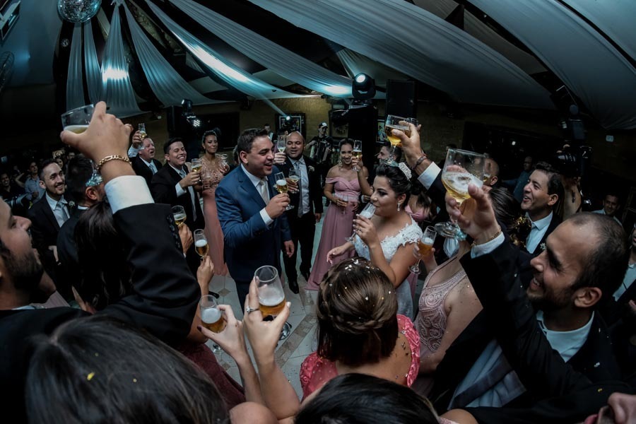 Muitas escolhas contribuem para o desenvolver do dia de um casamento, a igreja, o local da recepção, a música, entre outras coisas, mas nada substitui a energia do casal, quando o casal é animado certamente a festa será animada, e nesse caso o sobrenome da Wirso e da Mariana deveria ser FESTA! rs Impossível pensar neles e não lembrar de uma bagunça da boa, copo na cabeça, muita musica e cerveja!