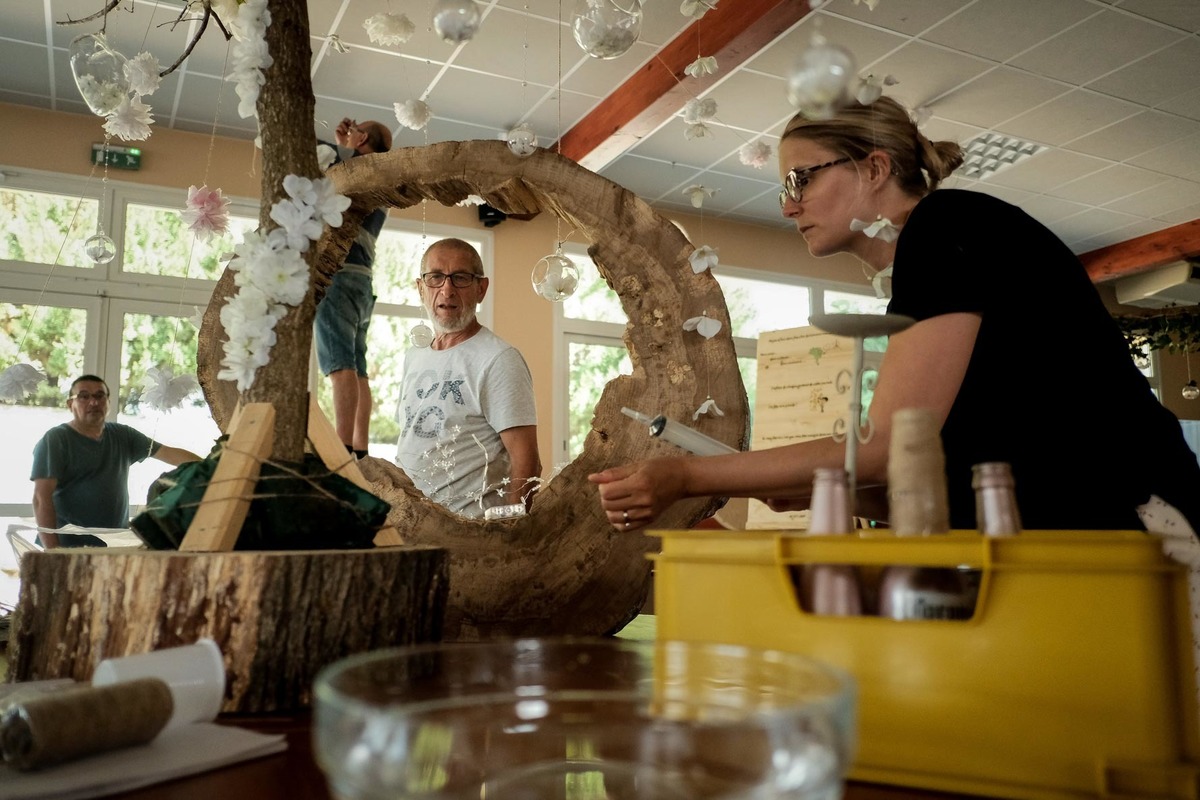 Maintenant, imaginez des invités qui arrivent tous les jours? Il y a eu 3 jours d’apéros: chez Carol, chez les grands-parents de Thomas, depuis 200 ans, et sur le lieu de la fête, où les préparatifs ont été finalisés un jour plus tôt.