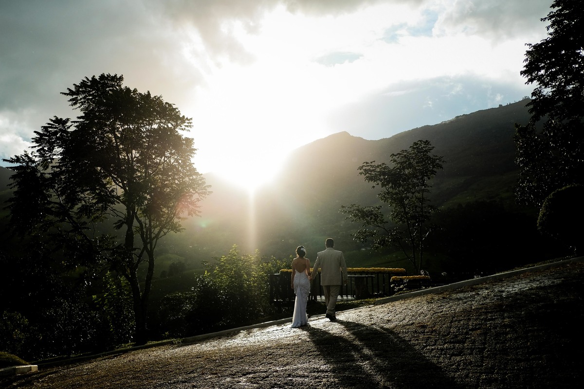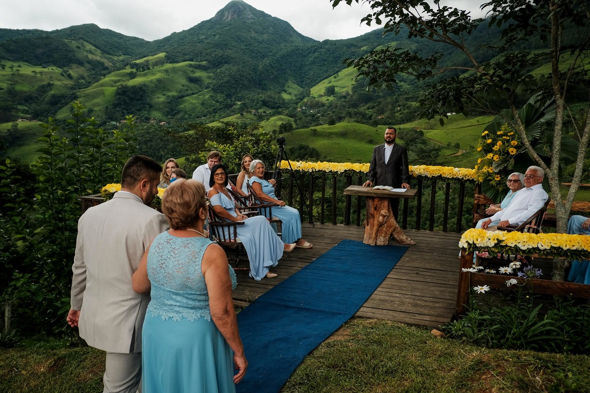 Depois de dias de muita chuva e neblina, fomos abençoados com uma tarde maravilhosa que deixou a cerimônia ainda mais especial, logo após a cerimonia quando todos já estavam no restaurante da pousada rolou uma chuva, mas cronometrada rs Que veio para refrescar e trazer um pôr do sol simplesmente incrível!