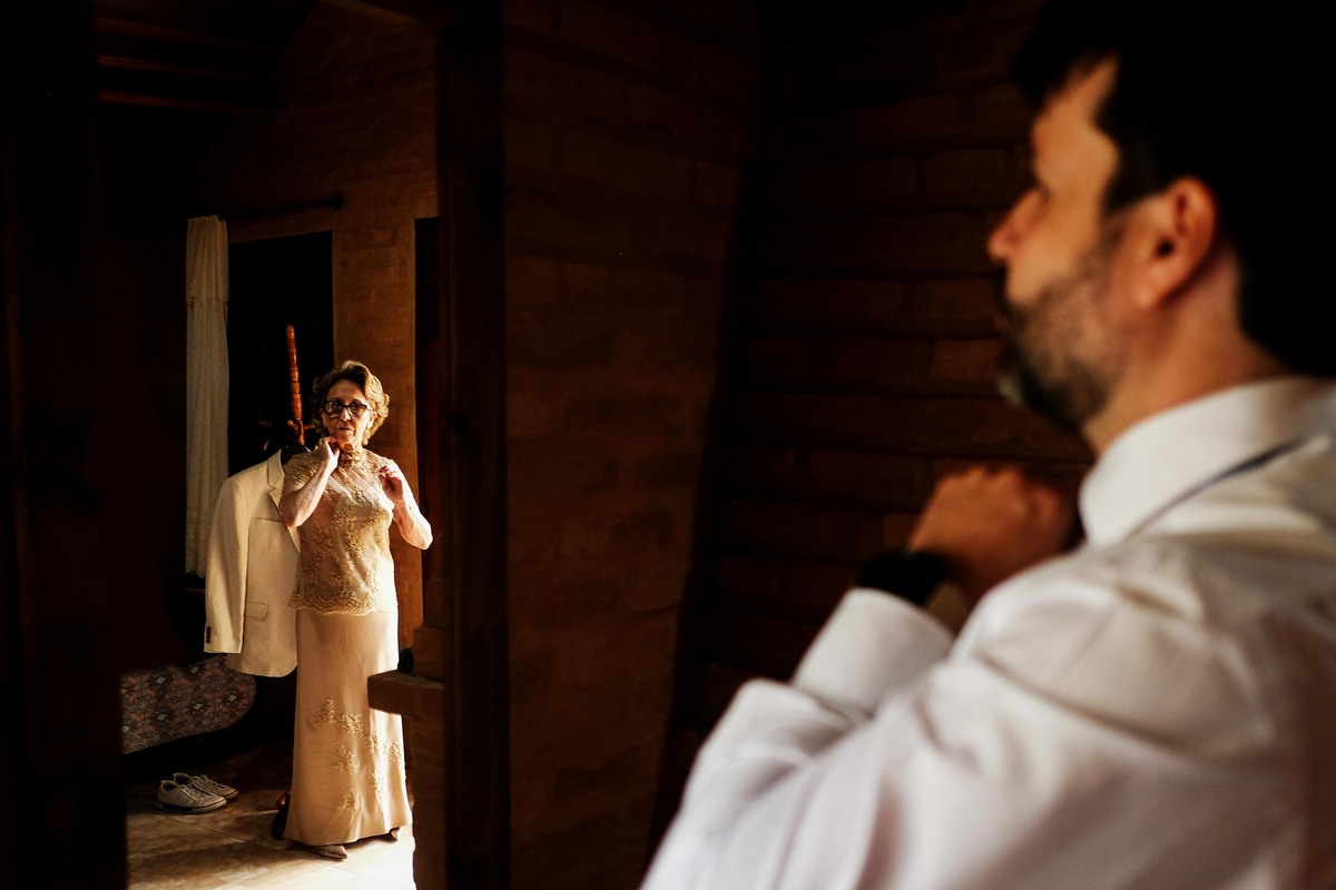 O Fábio preferiu se arrumar em um dos lindos chalés na Pousada Colar de Ouro onde foi a recepção, junto com sua mãe e irmão, estava ansioso e cheio de expectativa.