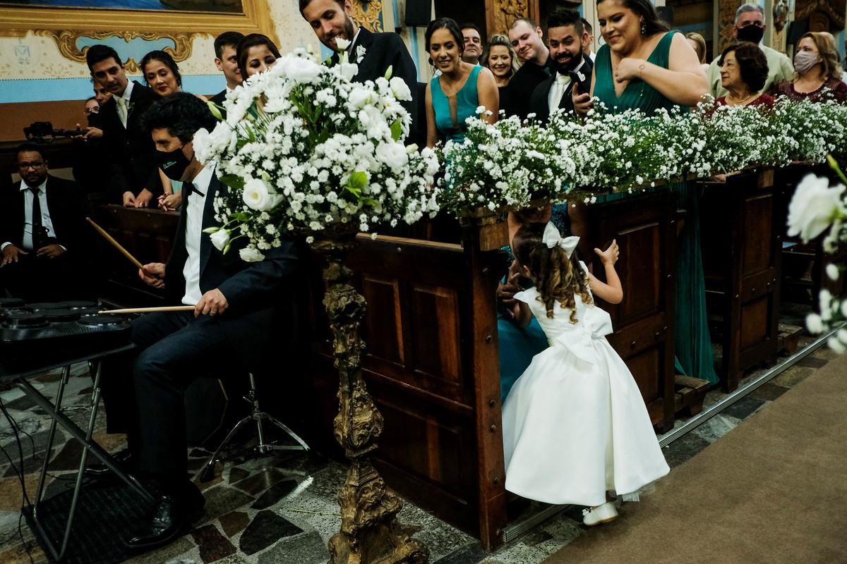 A Igreja escolhida foi a pitoresca Nossa Senhora da Graças, que estava lindamente decorada pelo Gustavo Barcelar, que também foi responsável por decorar a recepção nos Três Garças Hall, local novo e inédito para nós. O André Moraes foi responsável por animar a galera e botou todos para cantar e dançar em cima do palco, com aquela cachaça clássica que não pode faltar! E para encerrar não podia falta um bom samba para esse casal que ama carnaval, com a Bateria Explosão Verde e Rosa. Tudo saiu como planejado pelo Eduardo Bueno e sua equipe e o resultado não poderia ser diferente, foi perfeito!
