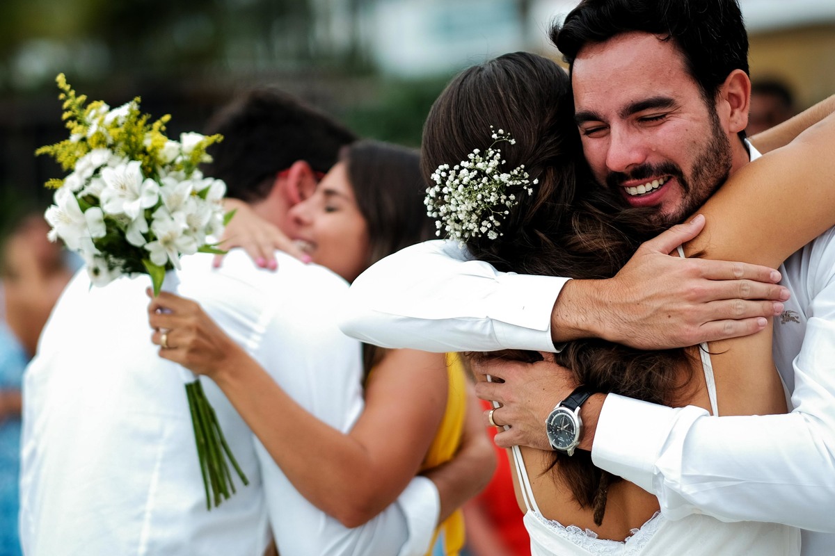 A praia de Juquehy, mais precisamente o Amar Casamentos, foi o lugar escolhido para esse dia mais que especial, que marca o início de uma nova fase e nada mais justo que celebrar essa união ao lado da família e dos amigos mais especiais 😉