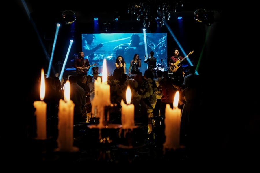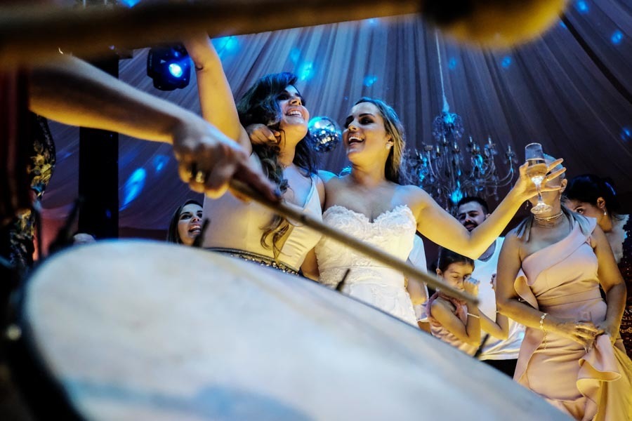 Pensa em um casamento que teve de tudo rs tudo mesmo! Banda, escola de samba, tequileiros, bolas neon na pista... nossa se eu for listar tudo aqui não vou mais parar rs