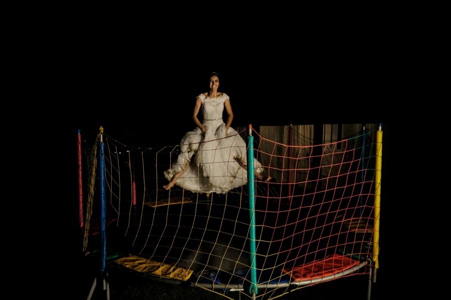Ao som do Dj Belchior, com uma galera super animada a pista pegou fogo cedo! E assim que a chuva deu uma trégua e Camila foi correndo matar sua vontade de pular na cama elástica vestida de noiva rss