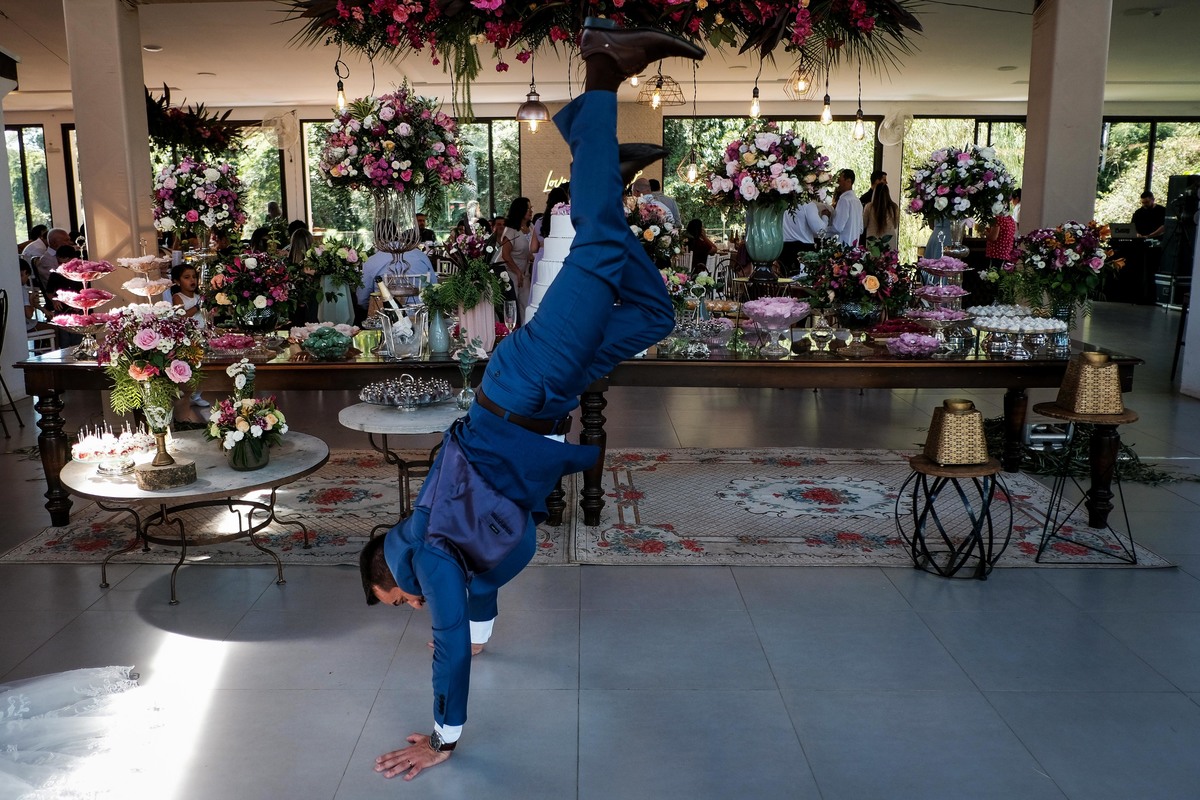 Ai pensei, se no casamento deles ele foi assim, imagina quando chegar o dele? rs. Chegou, e ele conseguiu superar as expectativas, acho que andei muitos KMs atrás dele fotografando pelo casamento, o Recanto do Bosque que é um espaço lindo e muito amplo parecida ainda maior. Perdi as contas de quantas estrelas, folhas secas e bananeiras foram rs, sem falar que perdeu a cueca na gravata já na primeira mesa, mas ligeiro, já tinha uma novinha no carro =]
