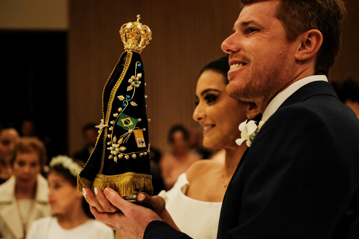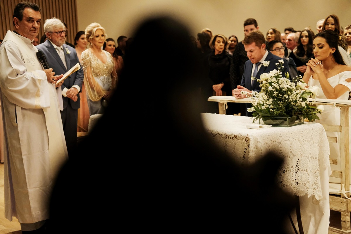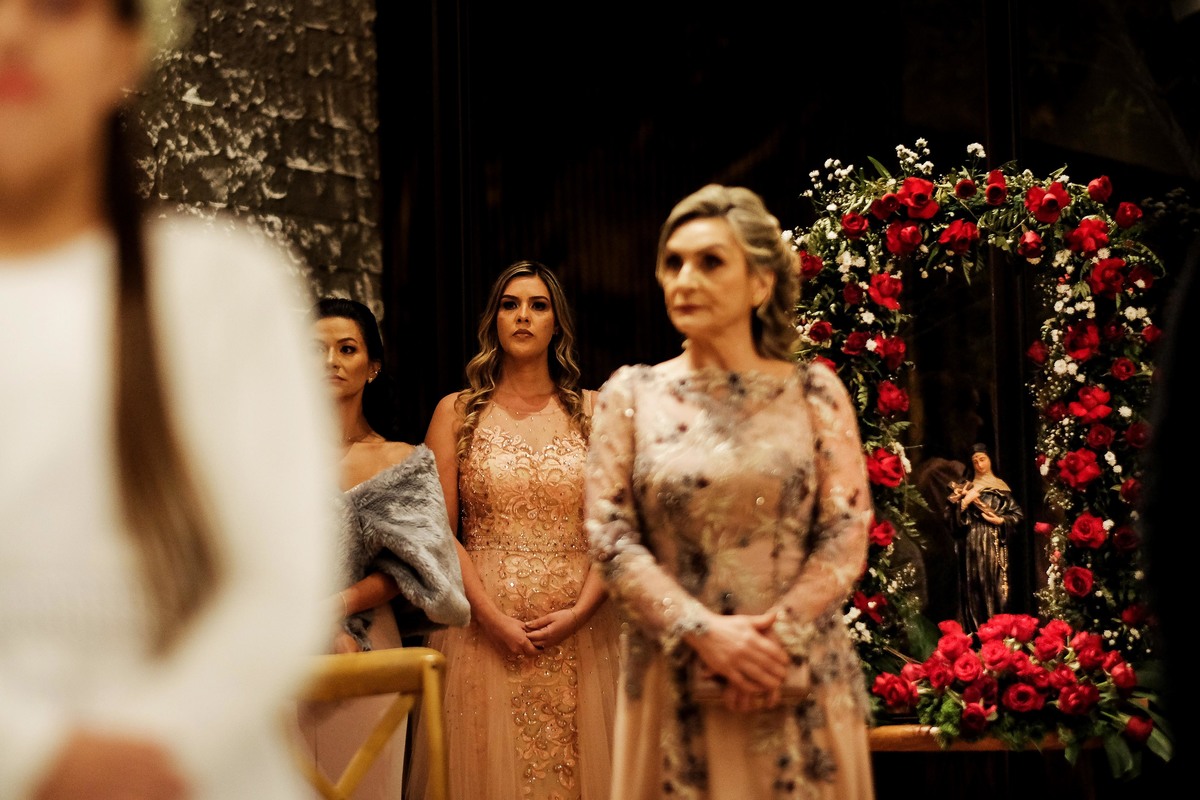 E mesmo não sendo dia de Santa Rita, sua imagem esteve abençoando a cerimônia em um lindo andor de rosas vermelhas, feito pela Harumi (que também é muito devota de Santa Rita) e que decorou não só o andor como toda a linda Capela do Recanto do Bosque. A cerimônia foi celebrada pelo grande Padre Ferdinando, muito amigo da Cíntia e que em uma ocasião especial lhe deu uma medalha de São José, para que ela pudesse encontrar seu o próprio José e não é que deu certo mesmo rs