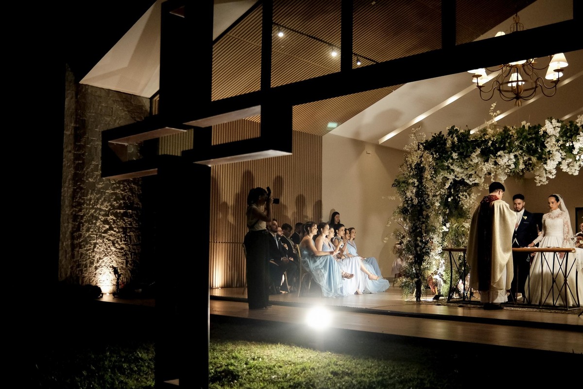 A cerimônia foi conduzida pelo grande Padre Célio e tudo aconteceu na linda Capela do Recanto do Bosque, que por sinal estava simplesmente maravilhosa, tanto que sabemos que serviu de inspiração para outros casamentos.