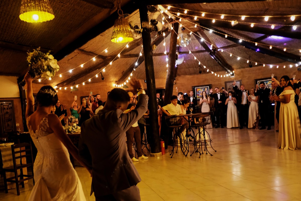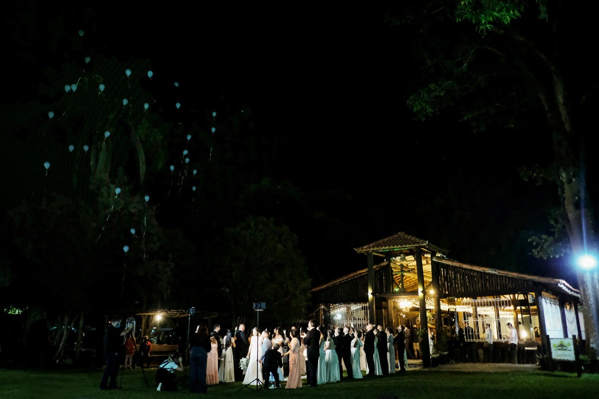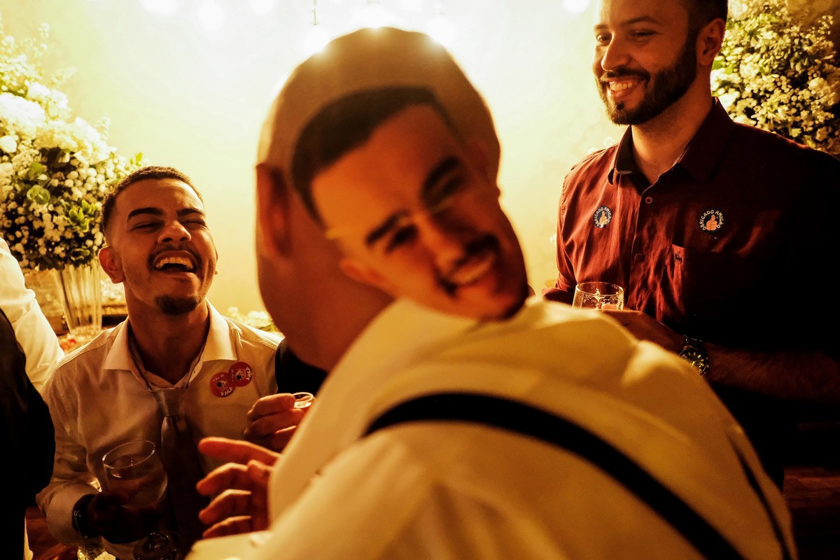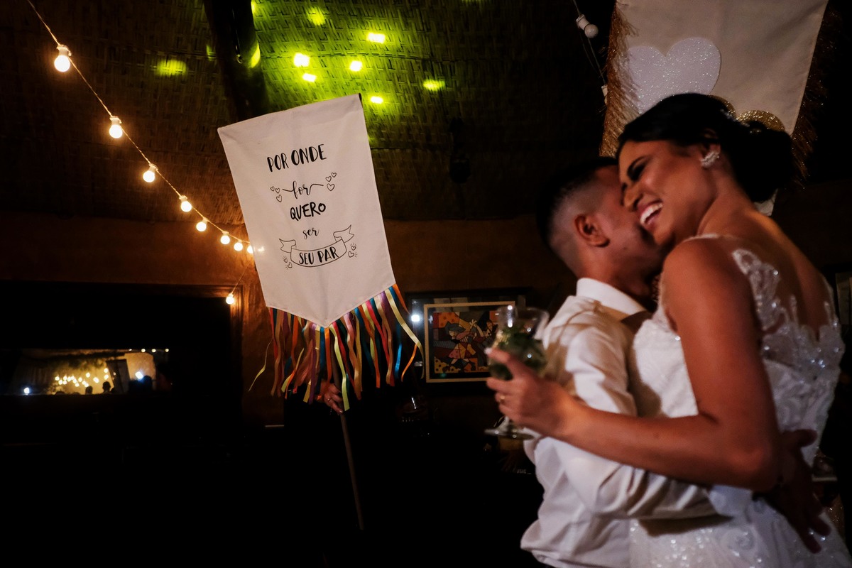 A recepção estava incrível, com o teto de luzinhas deixando a salão do Recanto Vip ainda mais lindo.